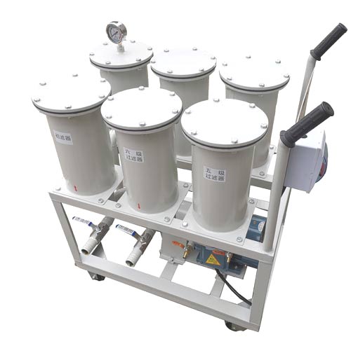 LJL精密滤油机设有六级逐级加密的五层加强型精密过滤芯,轻便灵活、操作方便、不用滤纸、不污染场地、能精细过滤油中的各种杂质。是电力、石化、冶金、机械、铁路等各行业对绝缘油、润滑油、液压油、淬火油、清洗油、冷冻油、防锈油、导热油等油品的高精度除杂,手推式设计,移动方便,特别适合于远距离、加油、抽油及过滤使用。整机外形尺寸很小,它除了小型高效、轻便灵活外,还具有装拆容易,清洗方便,使用中不漏油的特点,完全克服了传统的板框式滤油机换滤纸时,不可避免要漏油污染场地的致命弱点。传统的板框压力式滤油机需购买大量的滤纸,还要自己打孔,一次少则换十张,多则数十张,油中含水量较大时则十多分钟就需更换一次,否则,一旦纸被击穿,杂质必将穿过滤纸混入被净化的油中,导致前功尽弃。因其采用寿命极长的精密过滤系统(逐级加密式过滤芯),滤芯表面罩上一层复合材料做的高强度的精密过滤膜,当精滤系统杂质堵塞后,可将其拆御下来清洗后再装上去(可反复清洗使用),使其拆装、清洗方便、省事,工艺独特、操作简单。