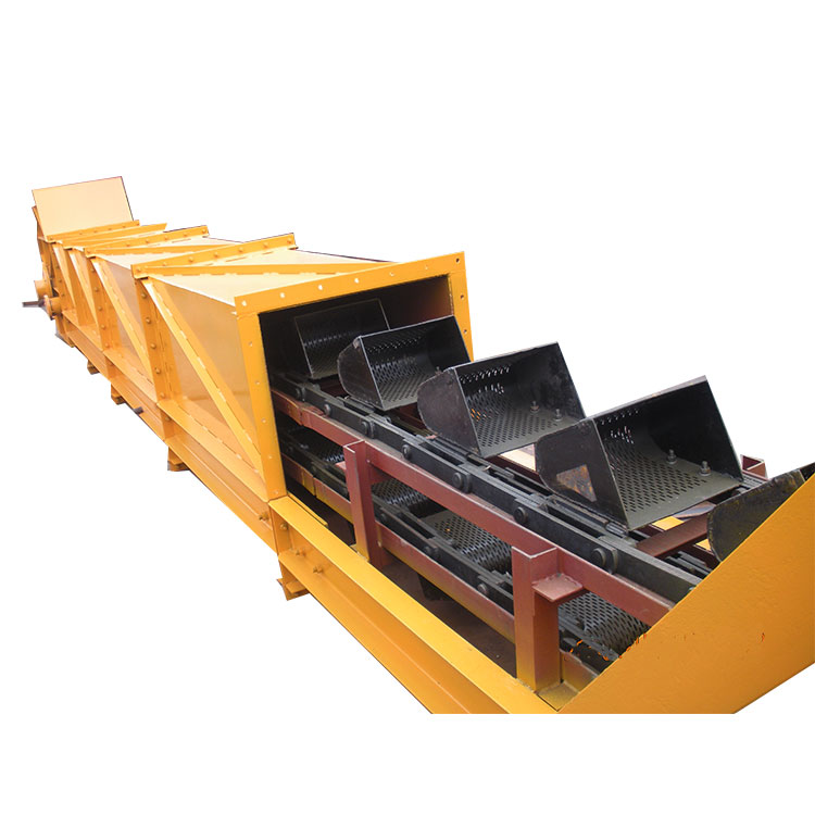 斗链——由两条链条和斗子组成。链条为片式牵引链,斗子用钢板制成,斗子上交错排列着脱水用得长孔,并用带榫的沉头螺栓间隔地(间隔一个节距)安装在链条上;