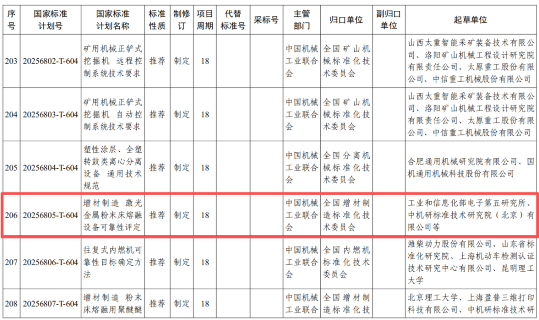 近日,国家标准化管理委员会发布《国家标准委关于下达2025年第十二批推荐性国家标准计划及相关标准外文版计划的通知》(国标委发〔2025〕76 号),由工业和信息化部电子第五研究所牵头,中机研标准技术研究院(北京)有限公司等单位共同编制的国家标准计划《增材制造 激光金属粉末床熔融设备可靠性评定》(国家标准计划号:20256805-T-604)正式下达,并同步制定相关标准外文版(外文版计划号:W20256988),目前该标准计划处于起草阶段,项目周期为18个月。
